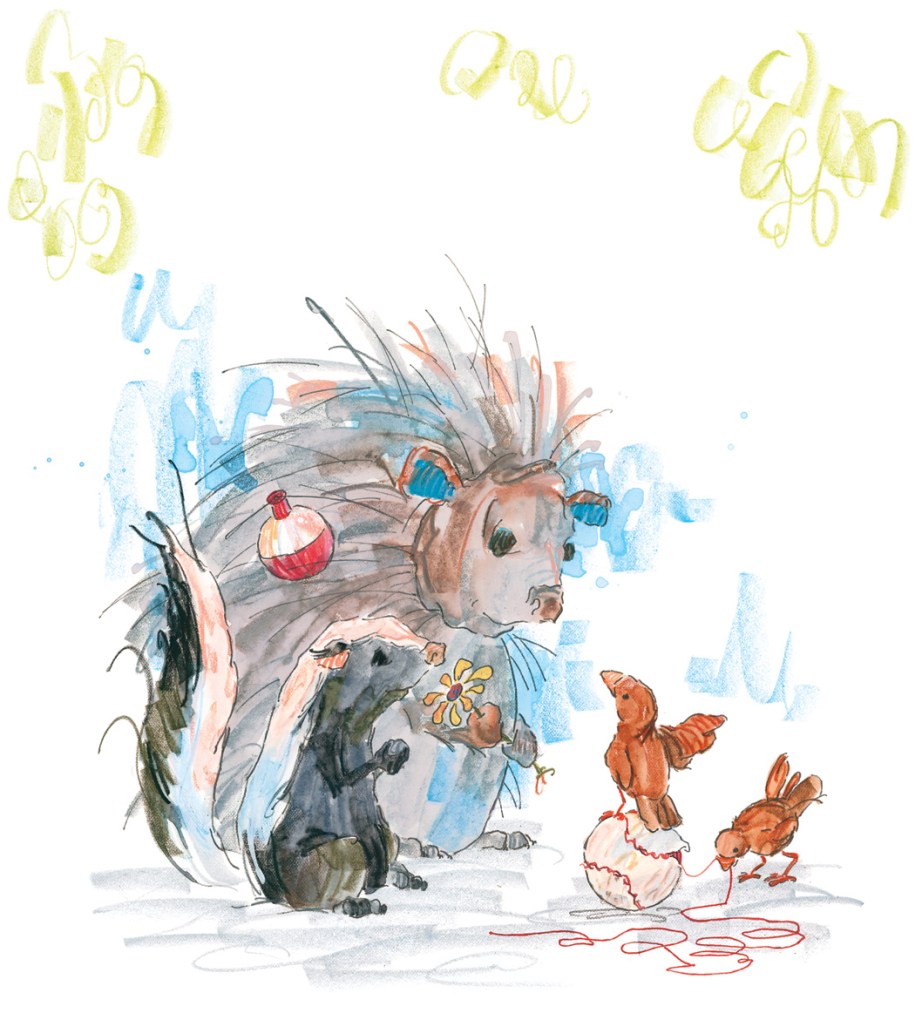 All that was left for me to do was to decide on an art style. My previous two books were done in collage, a very labor intensive, multilayered process. I love working that way, but the style just didn’t feel right for the characters or the setting in A Home for Bird. In the end I settled on a style and materials that I was almost completely unfamiliar with…
