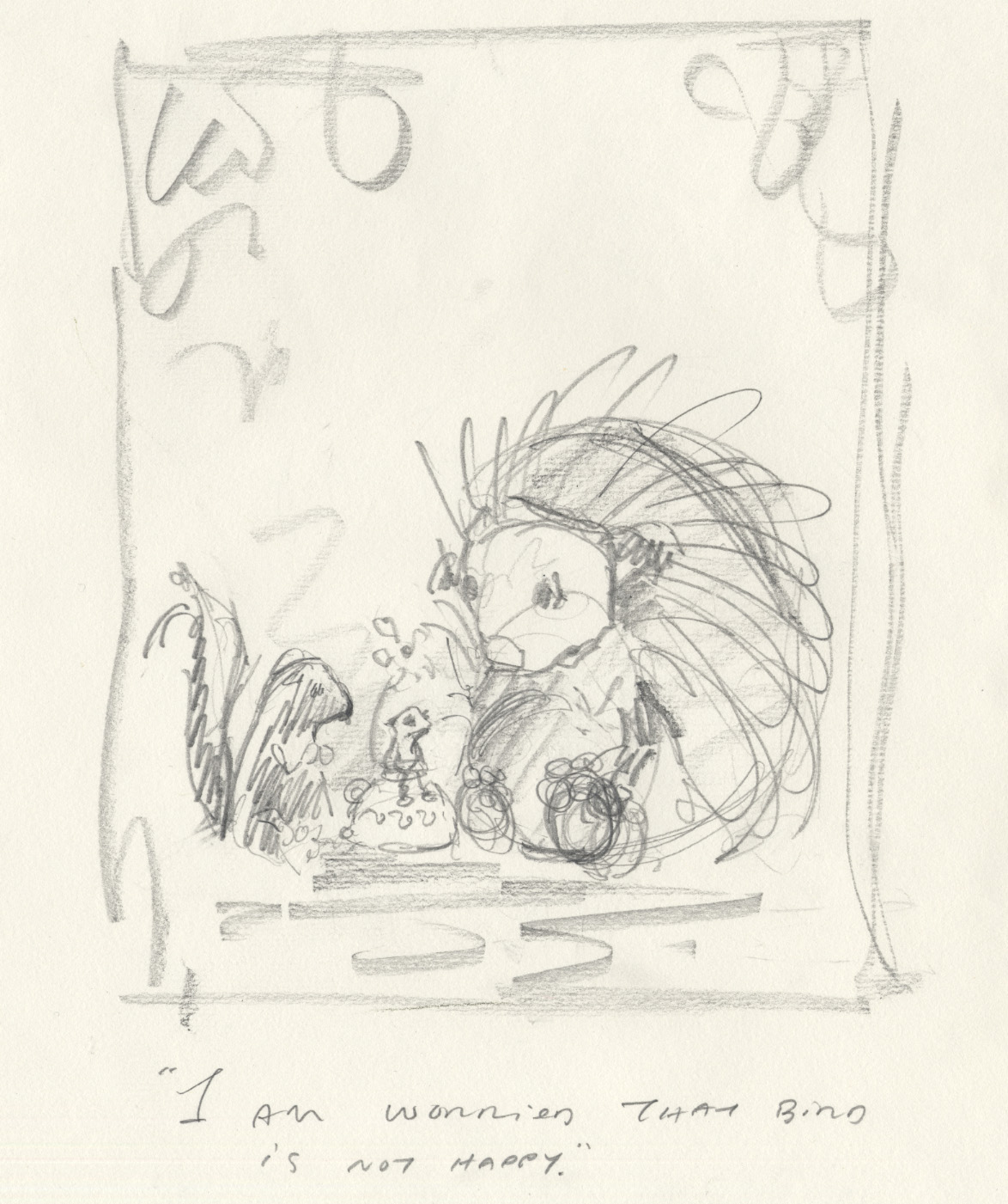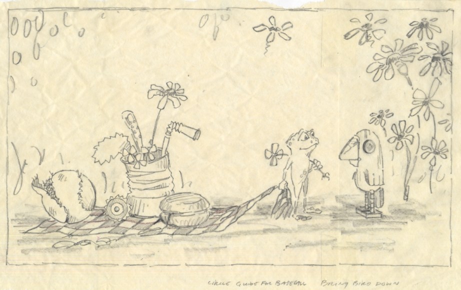 If I try to pinpoint a moment when A Home for Bird really began it was around the spring of 2006. We were living in Brooklyn at the time and one evening I sat down at the kitchen table and made a drawing in my sketchbook of a sad little toad sitting on a telephone wire. I don’t know where this image came from. It just happened and I didn’t think much about it. I wish I could show you that first drawing, but it was lost somewhere along the way—probably during one of our five moves in four years (moving from home to home becomes an important theme in A Home for Bird later on).