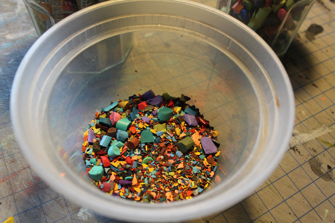 This is a year’s worth of crayon shavings that I’m thinking about melting down into a single Crayon of Infinite Awesomeness: