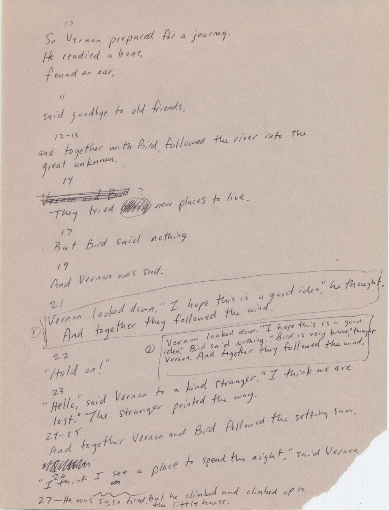 Oddly enough I felt liberated to hear that my story stunk. It freed me up to think of new scenarios in which Vernon could meet Bird.