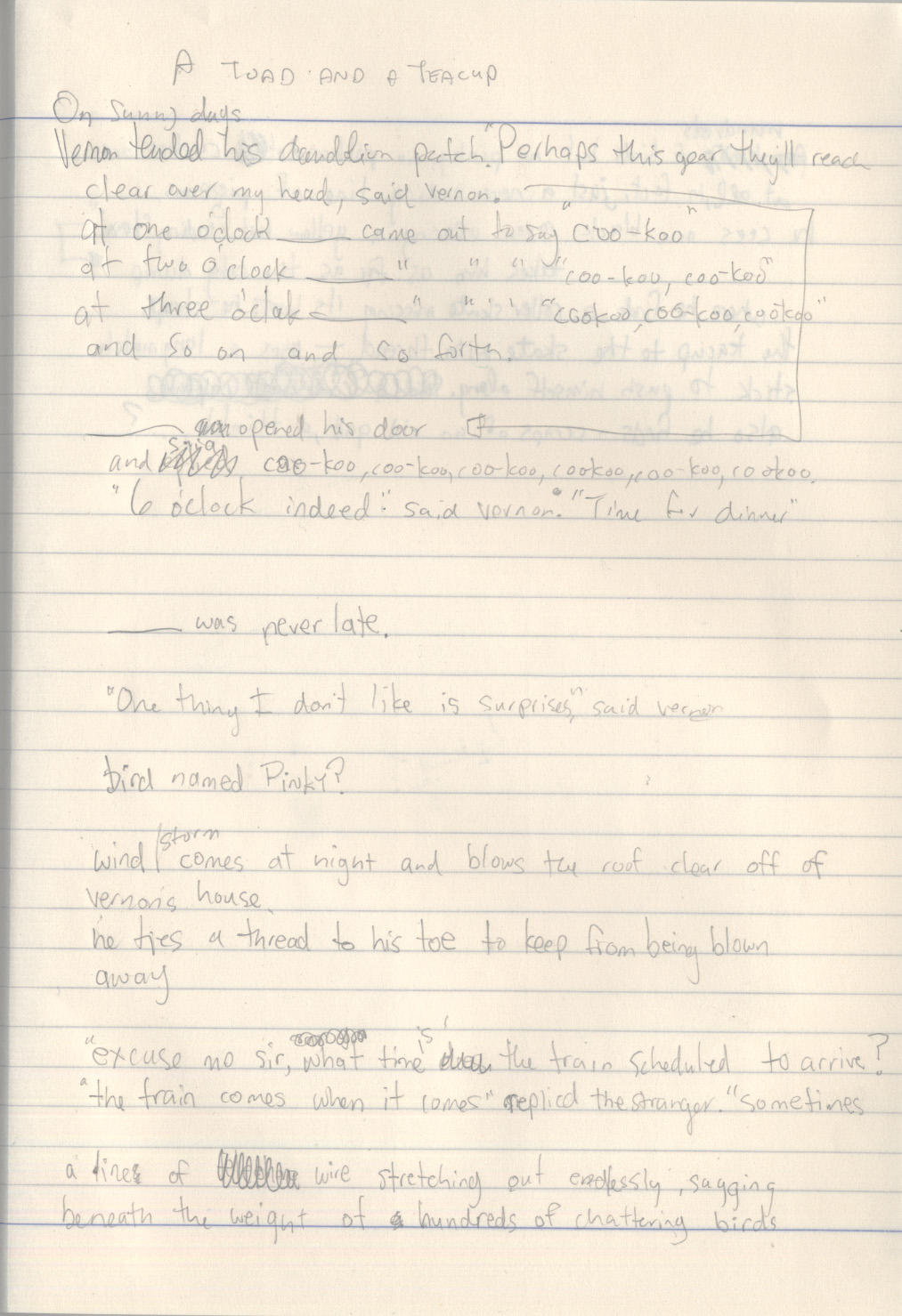 In November 2007 Erin and I took a much needed vacation to Hawaii. Transoceanic flights are a great place to get some writing done. It was on that flight, mostly out of boredom, that I first jotted down a toad-related story idea. It was titled, A Toad and a Teacup. Looking back now, these ideas bear almost no resemblance to the story that became A Home for Bird.