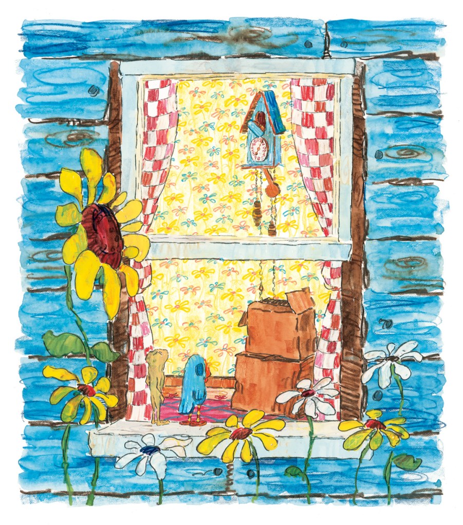 But why? When I was a kid my house was filled with clocks—grandfather clocks, cuckoo clocks, pocket watches kept under glass domes (Amos McGee carries a pocket watch), clocks with neon lights that light up on the hour and play Hey, Jude. There was even a mantel clock that after 25 years of doing nothing but chiming the hours and half-hours suddenly started chiming a Jewish folk song. Weird! The clocks I’ve known have had personalities. Which is why, I think, that clocks keep popping up in my books. Okay, getting back to A Home for Bird…