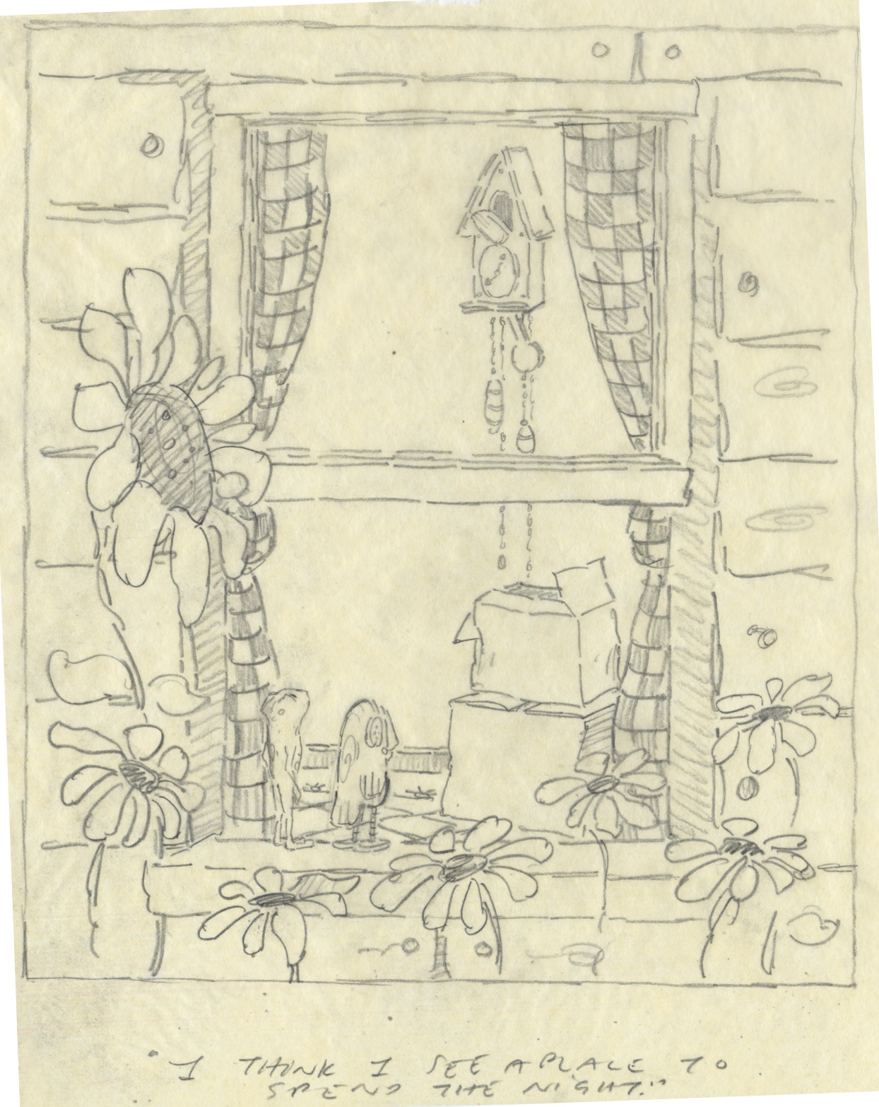 Several months passed and Erin and I moved out of New York City and into a cabin upstate in the Catskill wilderness. In some ways our new home was like the cuckoo clock I’d drawn, surrounded by mountains in the country with a river flowing by. It sounds idyllic, but the year spent in that house was memorable for its terribleness. Everything that could have gone wrong with that home did. It was cursed. I’ll spare you all the unpleasant details, but this image from Stanley Kubrick’s The Shining will give you a rough mental image of where we were living: