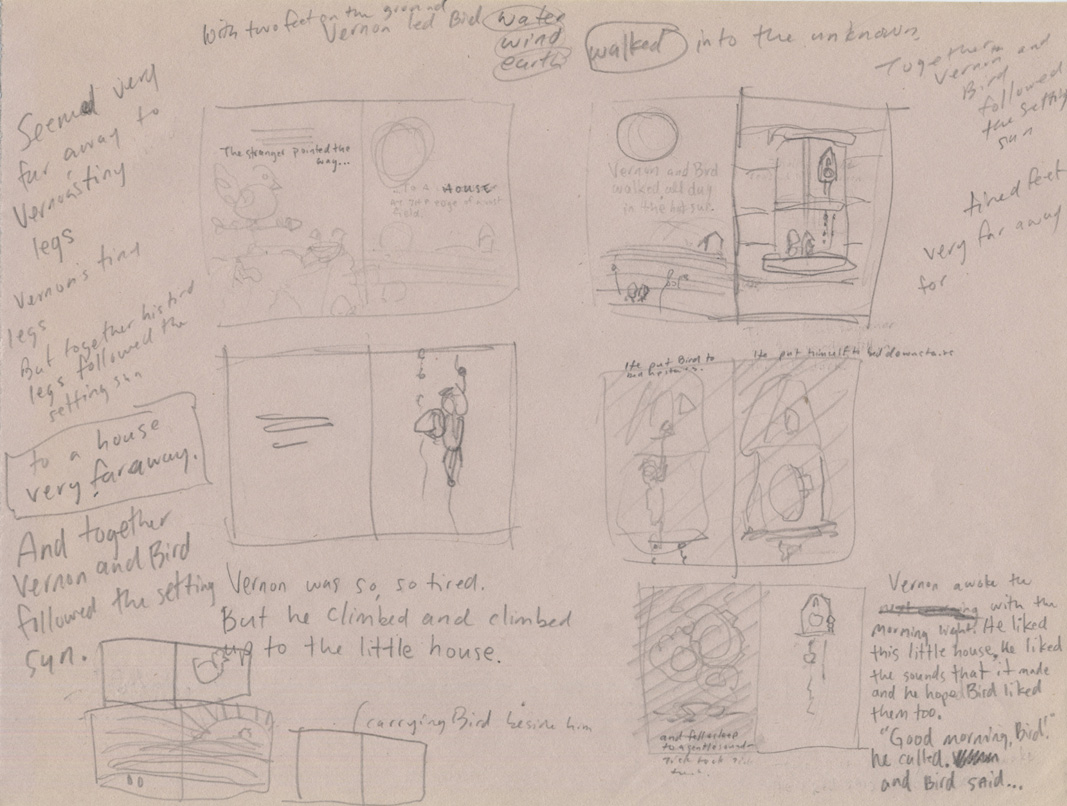 So where does a story come from anyway? I’ve been wondering that lately in the last few weeks before the publication of my new book, A Home for Bird. The story making process for Bird was long (very long) and strange with many roadblocks, dead ends, and false starts along the way. Typically when I finish a book I don’t like to return to it at all. I don’t even like to look at books I’ve written or illustrated unless I absolutely have to. But A Home for Bird was such a strange, unpredictable process for me that I feel compelled now to take a look back.