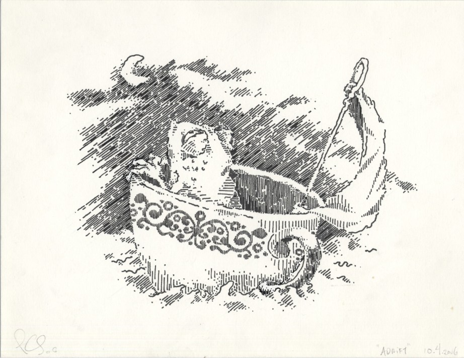 I put him into situations—sailing a teacup down the river on a moonlit night: