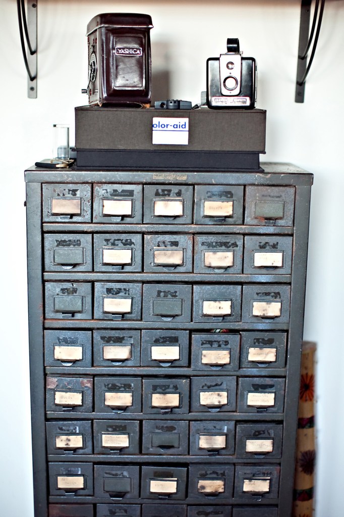 Vernon worked at a Ford dealership in Detroit. We never met, but I’ve inherited a number of his things. He was an amateur electrician. This was his cabinet that he filled with interesting little electrical parts, and knickknacks: