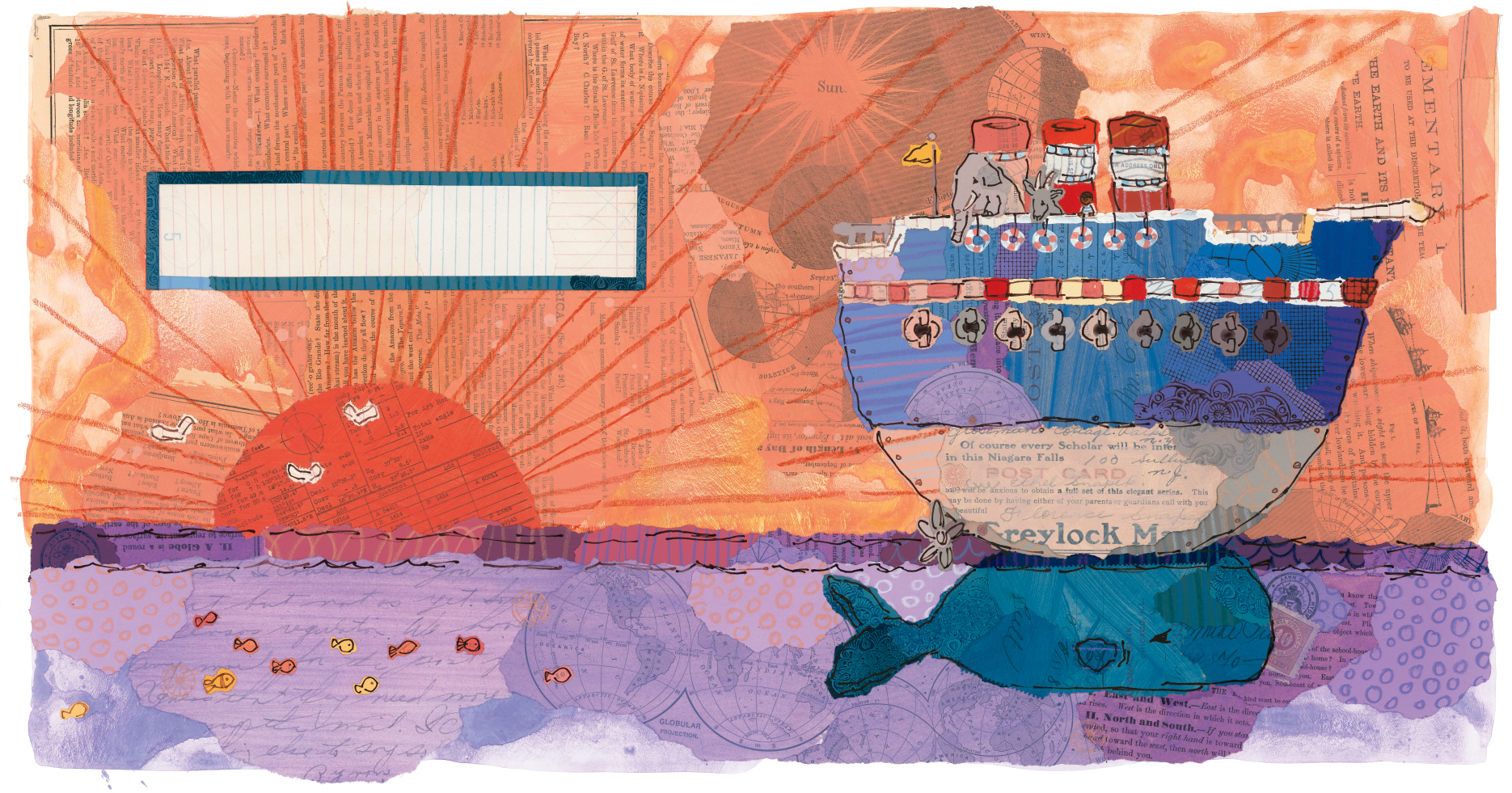 “Stead (A Sick Day for Amos McGee) uses squiggly ink lines and washes of warm color against a background of collaged newsprint, charts, and stamps that underscore the nautical theme and distance traveled . . . . a lovely, gentle adventure for younger readers.” –Starred Review, Publishers Weekly